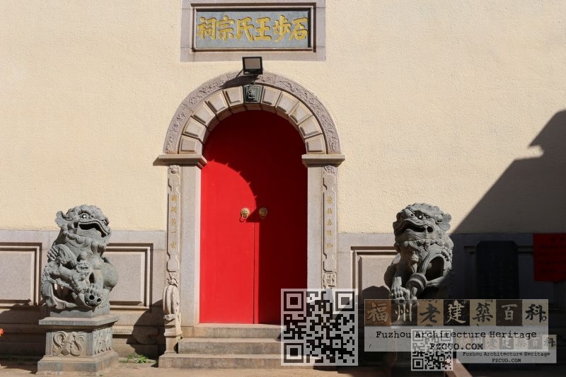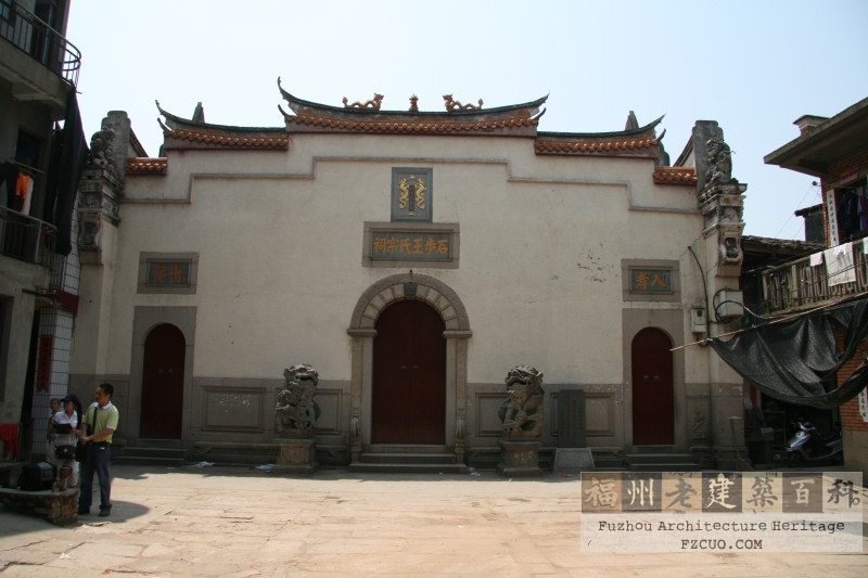 龙江石步王氏宗祠位于仓山区城门镇龙江村,始建于明万历年间,清代重建,民国16年(1927)、1991年重修,祠占地面积2075平方米,北偏西30度。祠共三进,封火山墙双坡顶,抬梁穿斗混合构架。前为戏台,中为祭厅。后为“槐应堂”,面阔三间,进深七柱,有“忠孝廉节”四个石刻大字。二进面阔三间,进深五柱,堂前刻有盘龙丹墀,祠有陈宝琛书写的楹联。祠祀开闽王王审知,主要建筑为清代格式。 FZCUO.COM
